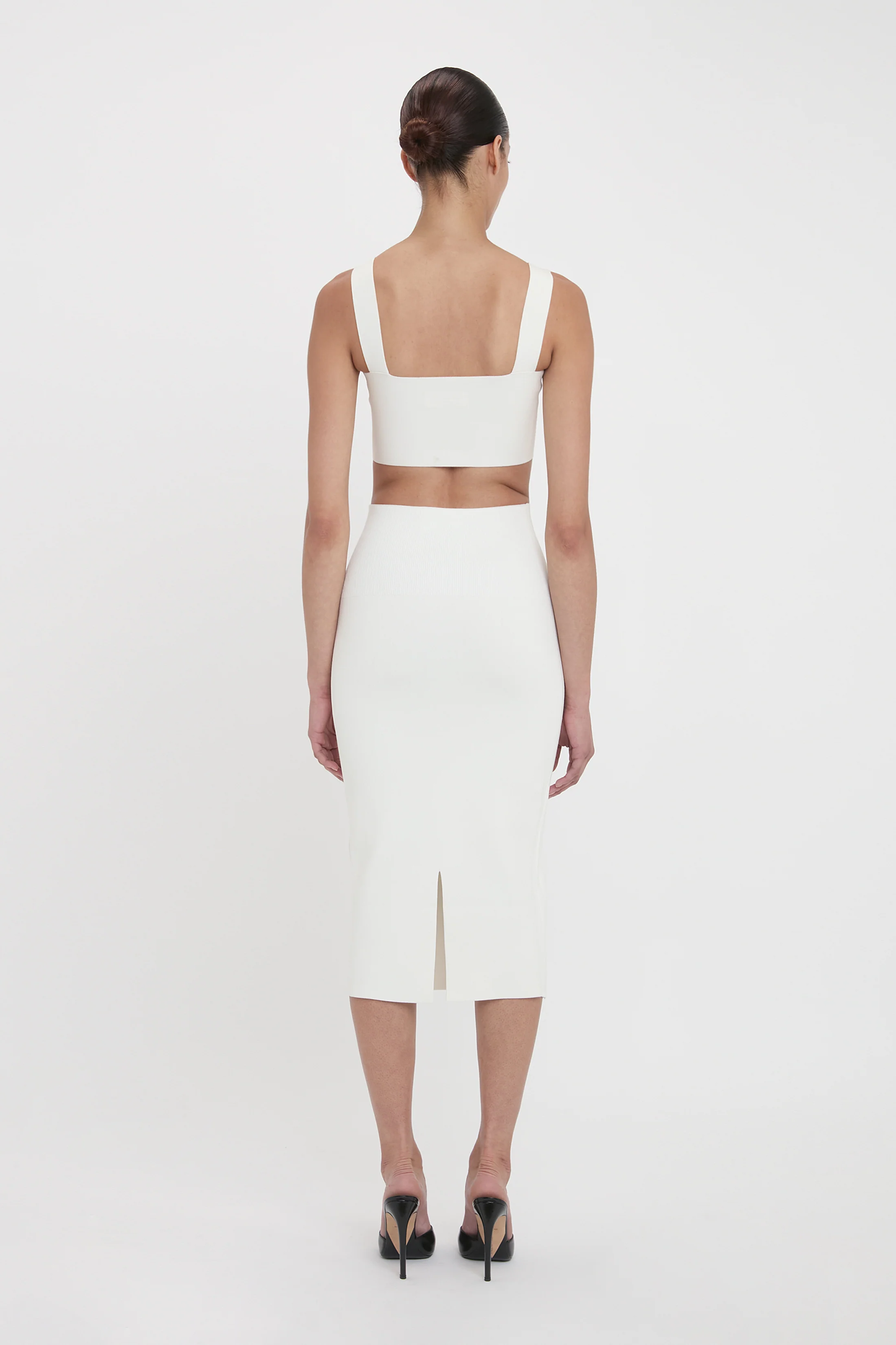 In crisp white and crafted from exclusive, high-compression knitwear, the fitted Strap Bandeau is bold and intentional. Meticulously designed and expertly constructed, integral design details include subtle pointelle detailing along the bust for considered support, and wide straps for comfort and ease of movement.