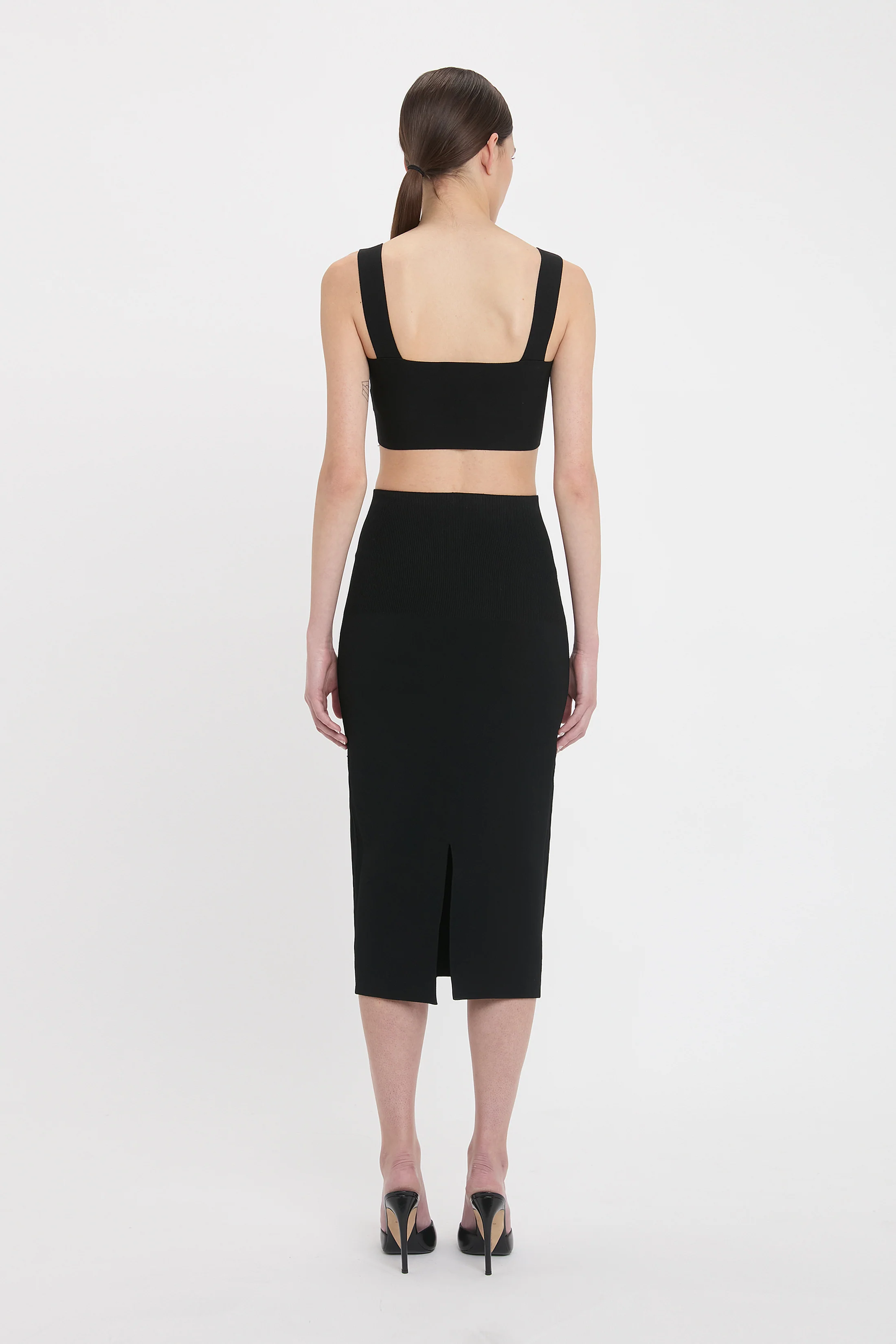 Expertly constructed, form-fitting and simple, the VB Body Midi Skirt in classic black is crafted from our signature compact knitwear for contemporary polish. A modern wardrobe foundation, a back slit allows for easy movement.
